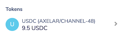 b. From the Keplr extension, your bridged USDC will be listed in "Tokens" at the bottom of the window.&#x20;