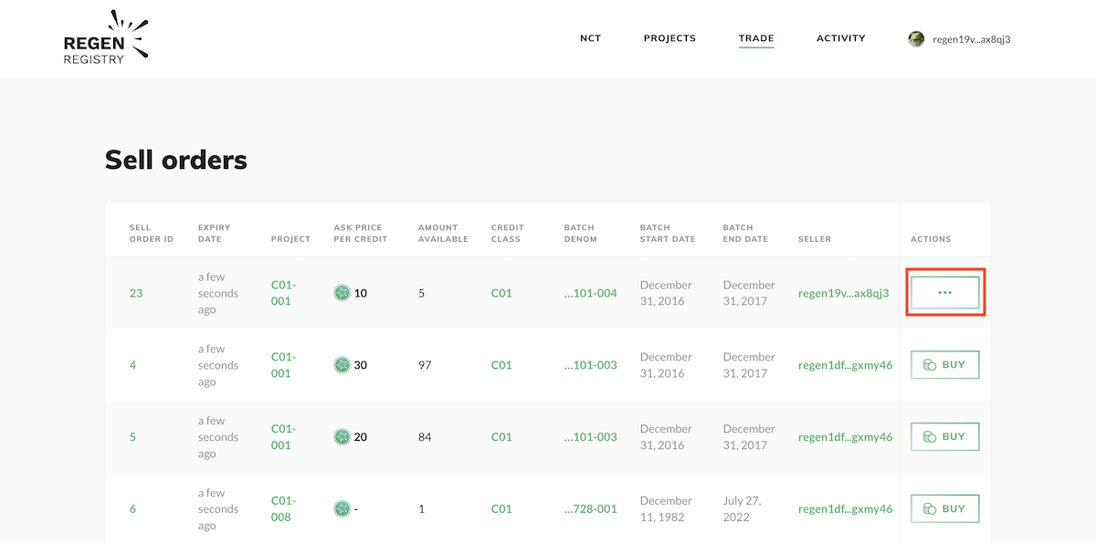 3. Select Ecocredits to Sell
